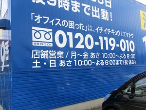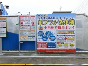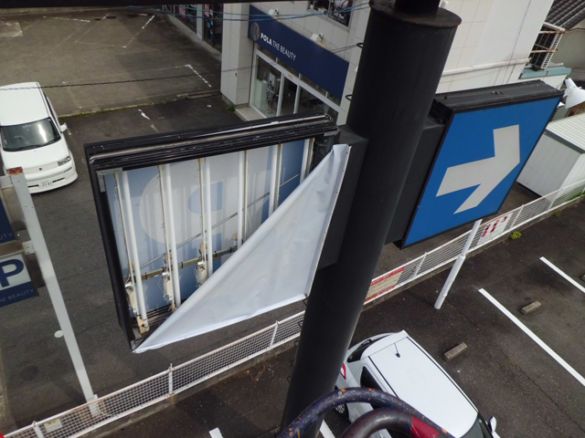 正面の看板は、フレックスシートと言う、汚れに強く、耐候性に優れた特長を