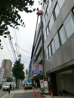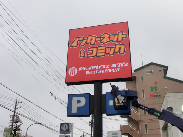 5m以上ある看板を張り替え致しました。
