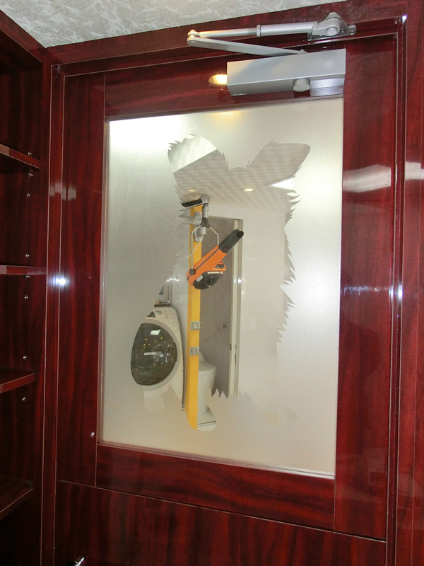 店舗窓面にも擦りガラス状のシートを貼りつけ