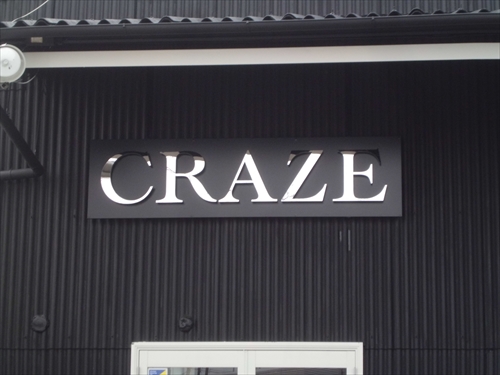 店舗正面側は、壁面看板を張り付け、一番左の窓面にカッティングシートを