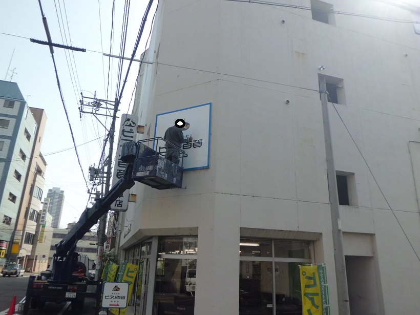 次は、既成品の看板に貼り付けたものです。